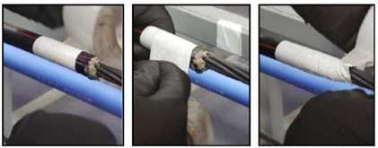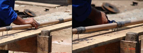 Após essa etapa, procede-se ao encapsulamento e alinhamento do trecho livre, etapa fundamental para a qualidade do tirante.