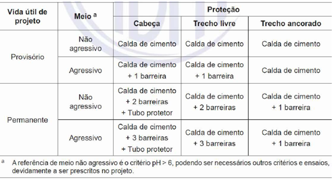 A produção de tirantes exige controle rigoroso e conformidade com os critérios técnicos definidos pela ABNT (2018), que normatiza o projeto e a execução de tirantes ancorados no terreno.. O Anexo C trata da proteção anticorrosiva, detalhando níveis de proteção (NPC) e o uso de barreiras como graxas e bainhas de PEBD. Melhorias nos processos e acessórios garantem proteção multicamada eficaz, da fabricação à instalação.
