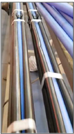 Para viabilizar a montagem industrial e entrega no canteiro, foram feitas adaptações em componentes importantes. Os tubos rígidos de PVC foram substituídos por tubos flexíveis de PEAD (Polietileno de Alta Densidade), que são resistentes e inquebráveis. O PEAD permite produção contínua de até 200 m, eliminando emendas e facilitando transporte e manuseio.
