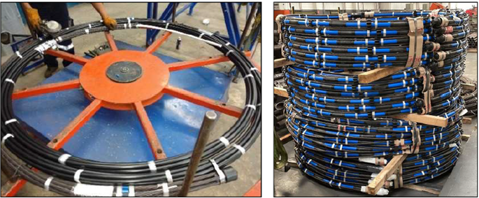 Estruturalmente, os tirantes apresentam elevada resistência, melhor desempenho na protensão e injeção, com distribuição uniforme de tensões e menor risco de falhas. Logística otimizada reduz prazos, evita montagem em campo e permite uso de equipamentos menores. Bobinas compactas facilitam transporte e requerem menos espaço para estocagem.